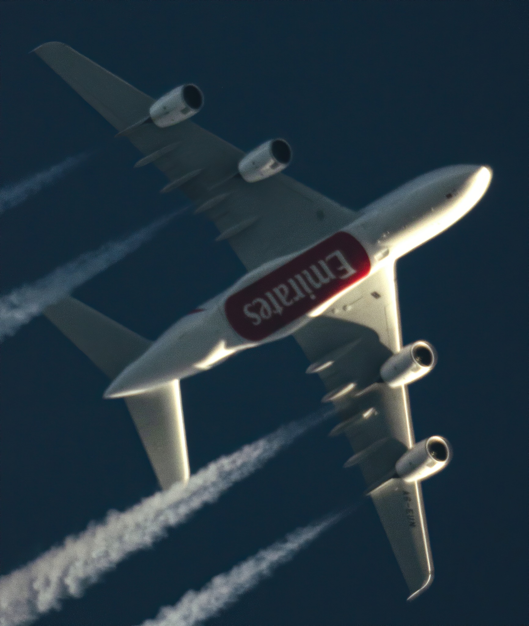 Un Beoing 747. Nikon P900 la focala 2000mm, echivalent. E destul de complicat sa tin aparatul asta fix cand fac poze la unghi mare la focala asta. Mai ales ca e cam mic pentru mainile mele. Ar trebui sa beau mai putina cafea, (cam greu).