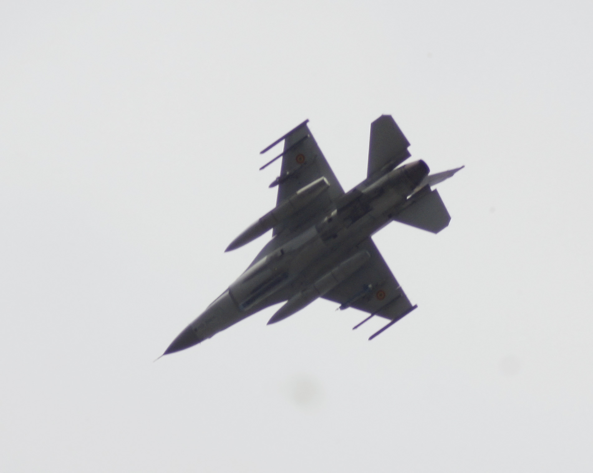 Pozele cu F16 le-am facut tot cu Canon 450D dar prin luneta de 45/550mm, care ofera camp mai mare si astfel am urmarit mai usor avionul, care era rapid si greu de urmarit cu luneta de 80mm.