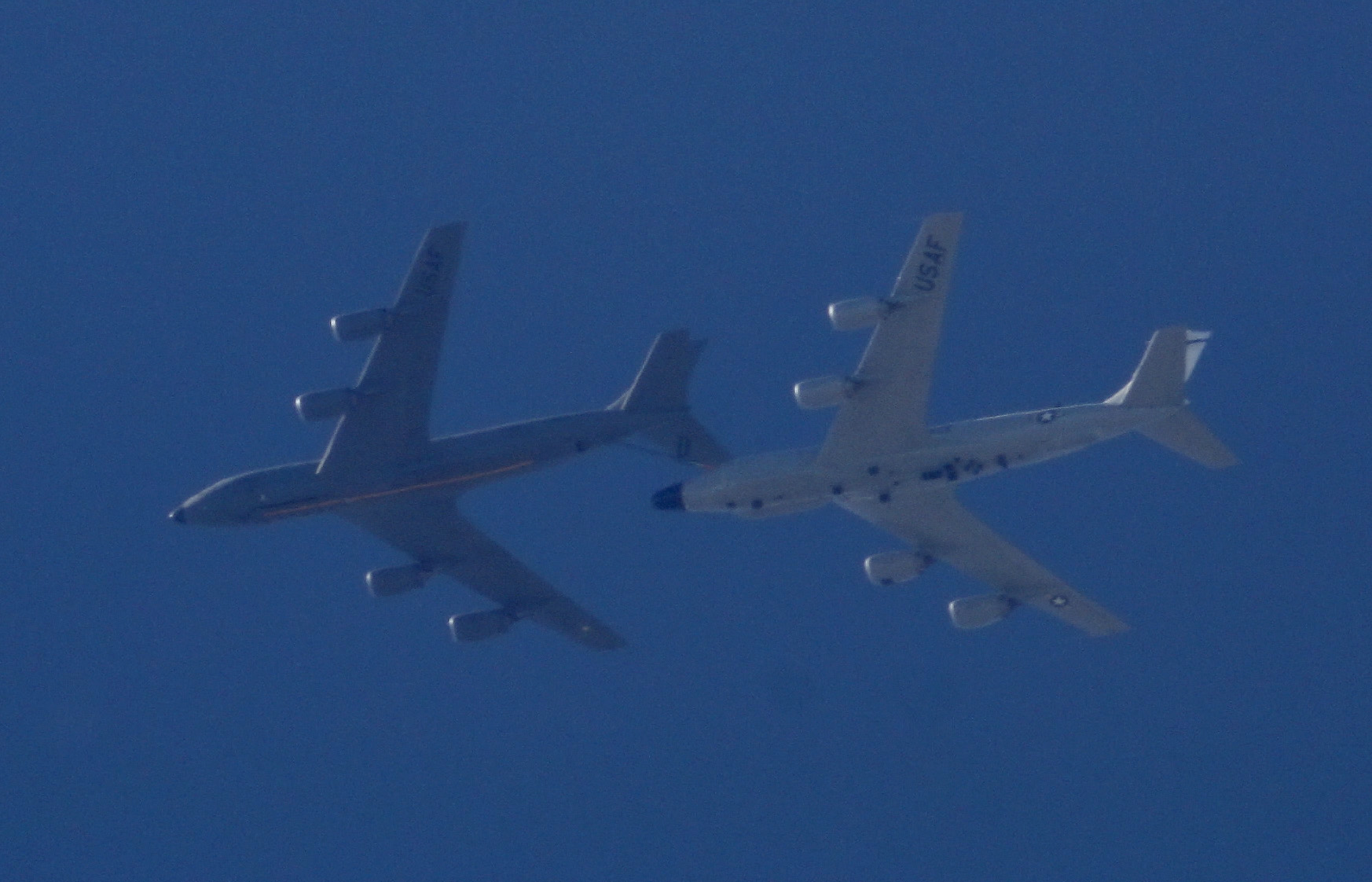 Ultima imagine a fost facut cand avioanele zburau prin nori, de aceea se vad mai mult ca niste siluete intunecate pe fondul cerului.