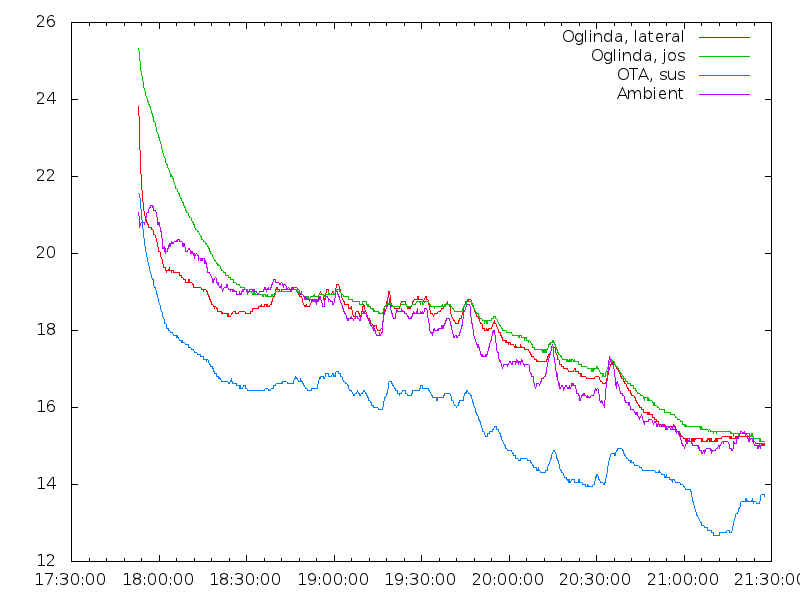 @dragos.n: conditiile au fost atipice in mod normal as deschide mai devreme sa mai fuga caldura din "sera" - vezi temperatura initiala a oglinzii. Radiatie locala oarecum similara cu ce descrii am avut si eu: la 18:16 am deschis si usa si racirea se accentueaza, semn ca mai aveam caldura de dat (obs. e din lemn).