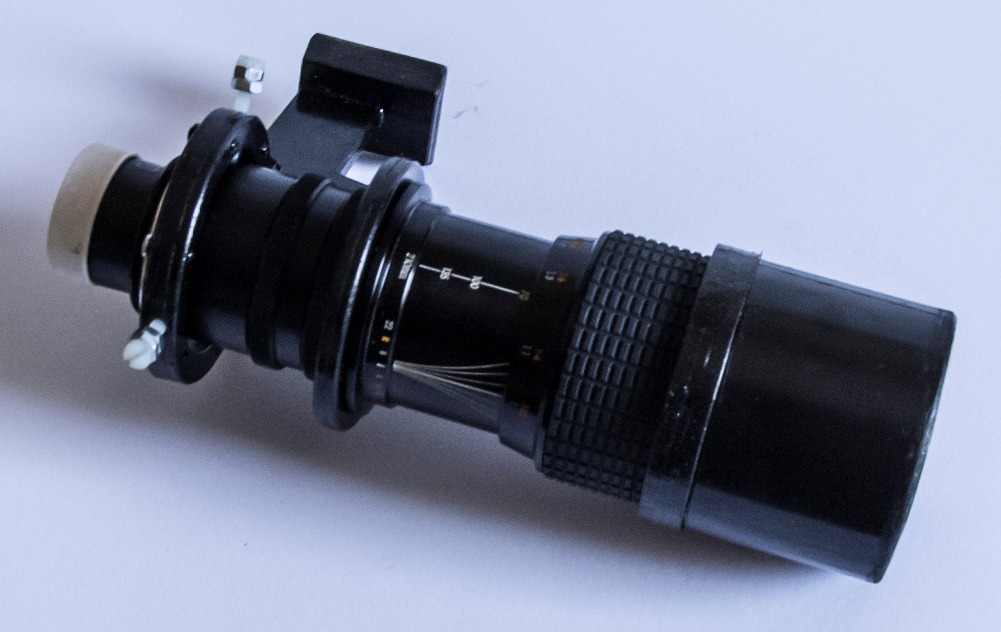 Luneta are corpul integral metalic, asa cum se faceau inainte, si are diafragma interna originala, dar am blocat-o la deschiderea maxima. Focalizarea are o plaja foarte mare, obiectivul original fiind capabil de macro. Poate fi desfacuta foarte usor pentru a putea fi folosita ca luneta de mana, dar si ca obiectiv foto. In acest sens am probat-o cu un adaptor T2-Pentax, care se infileteaza fara fortare pe o tura si un pic, suficient sa se tina bine in camera. Luneta are si un parasolar detasabil si care poate fi pus invers, pentru a ocupa mai putin loc.