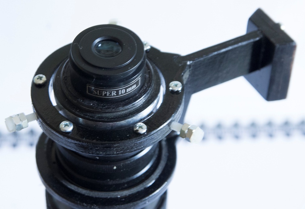 Acum deoarece am in minte un alt proiect, vreau sa o vand. Si pentru ca sa aiba o valoare de utilizare mai buna, din niste textolit si trei suruburi de plastic, plus ceva burete dur, am confectionat un adaptor pentru atasarea lunetei la suportul de cautator al unui telescop. Astfel, se rezolva problema pe care am constatat-o uneori, cand uneori as fi avut nevoie de un camp vizual mai ingust si marire mai mare.