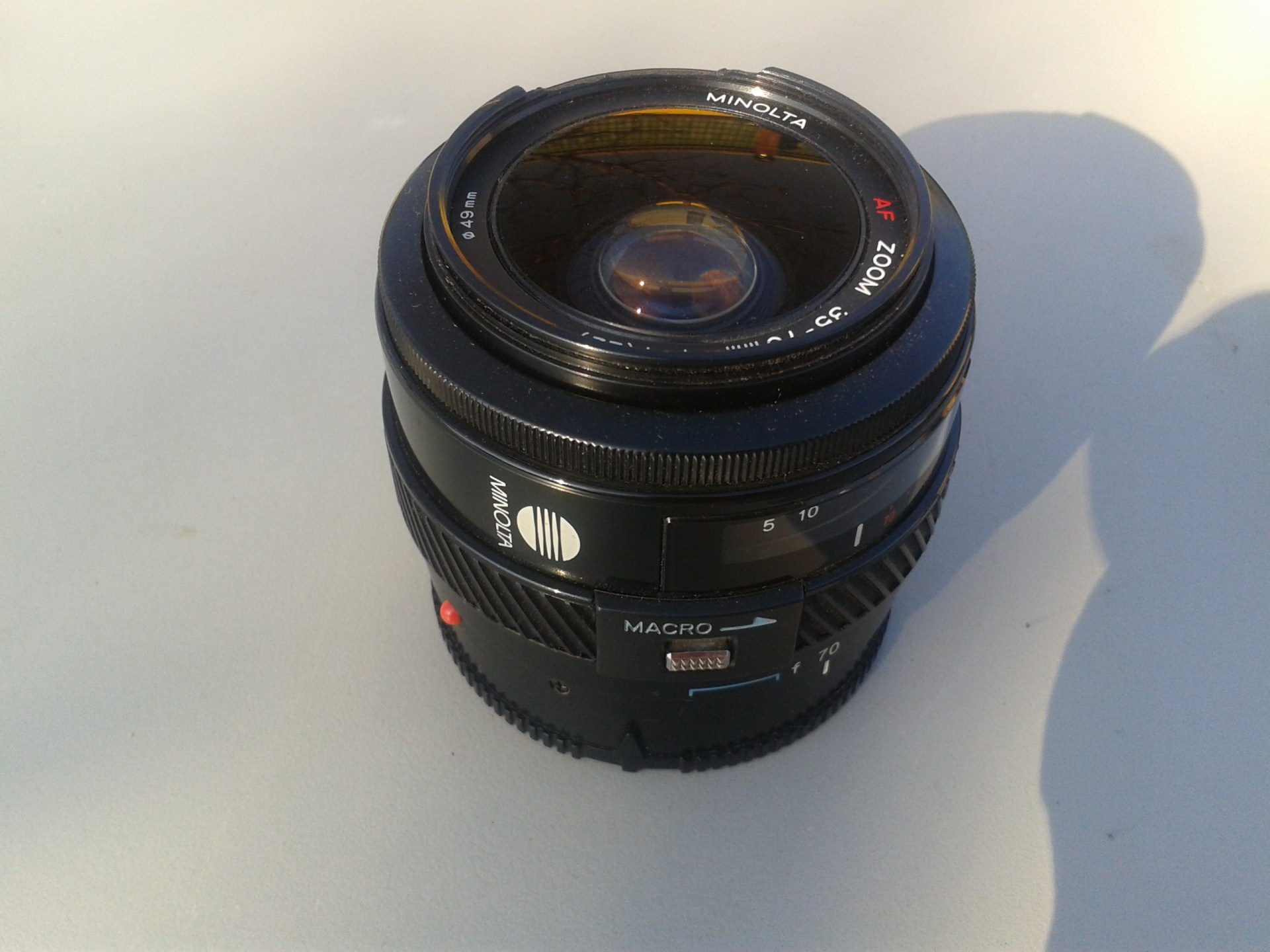 Dupa cum se vede in fotografii obiectivul Minolta 35-70 are o cioblitura in zona de infiletare a filtrelor si nu mai are parasolar ,dar functioneaza foarte bine