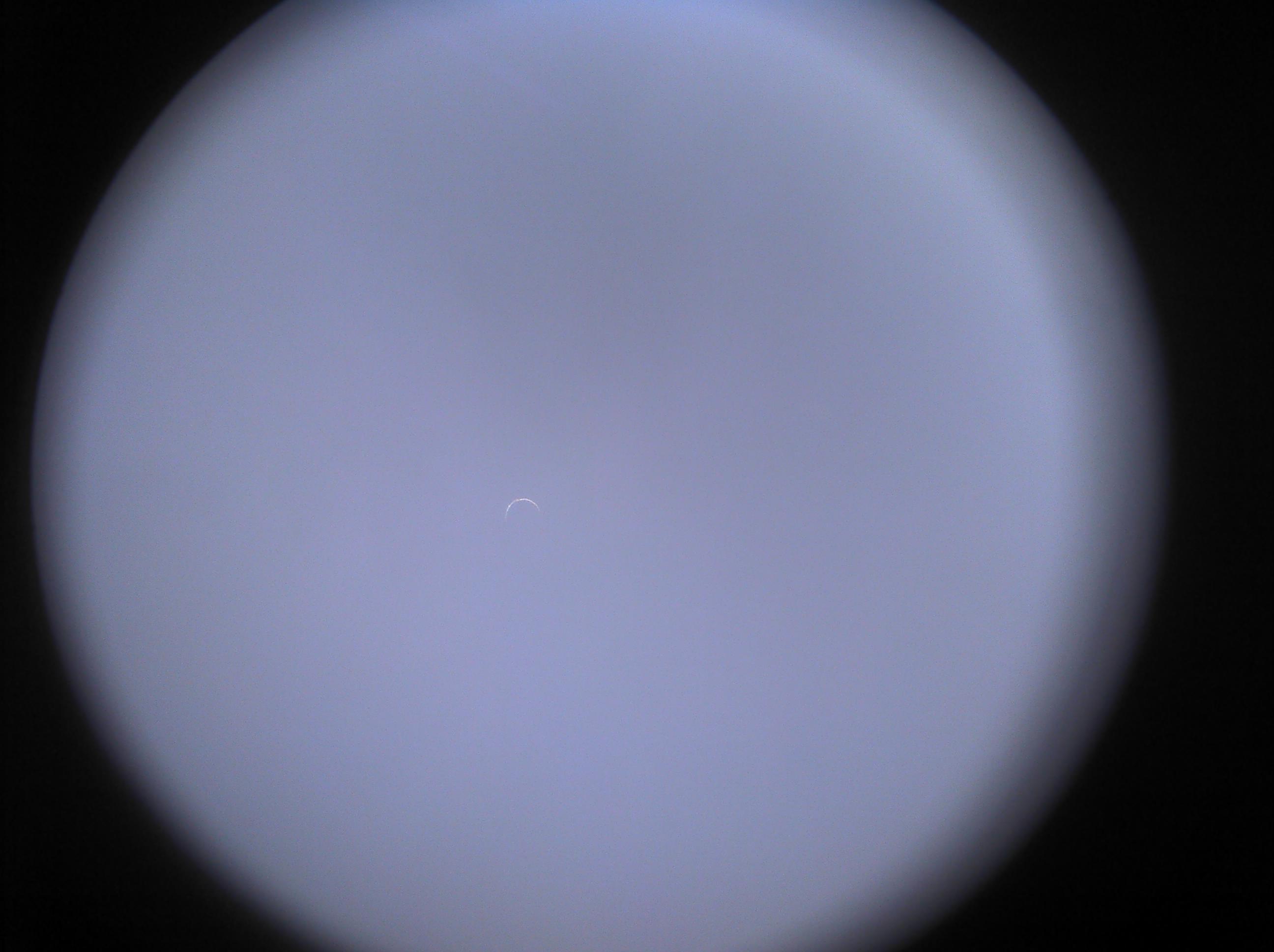 Conform datelor ce le arata in Stellarium, faza planetei este de 0.4%, iar diametrul de 1'02.6". Distanta aparenta fata de Soare cam 5°36' si avand in vedere circumstantele in care se vede planeta, aceasta este o alta premiera, pana acum cea mai mica faza a planetei pe care am vazut-o a fost undeva la 25-30%.