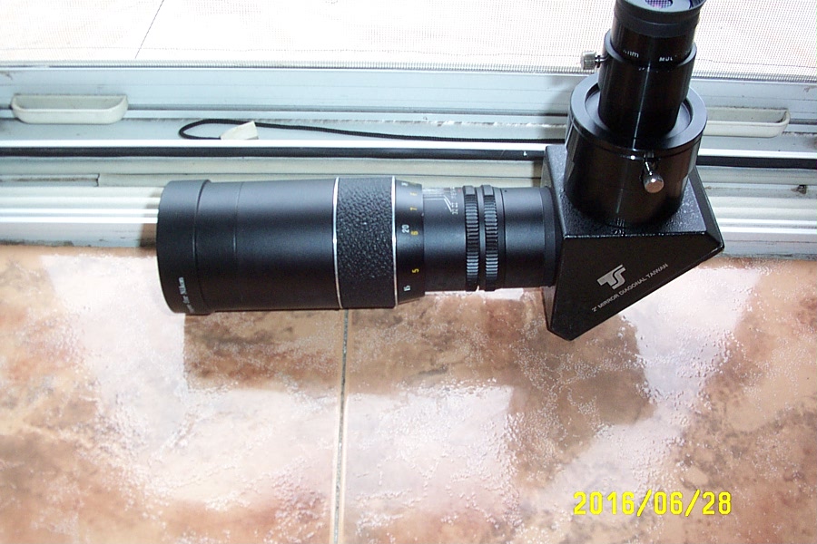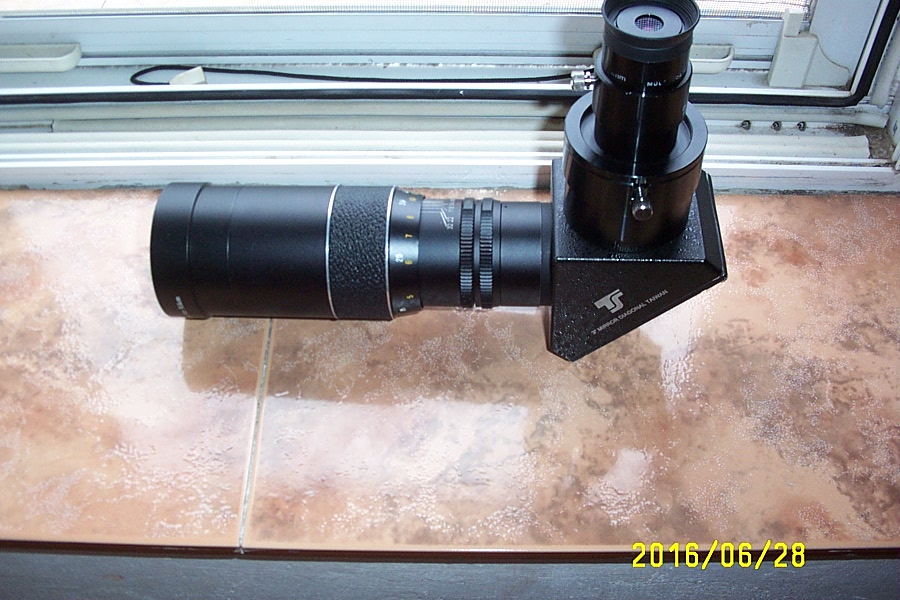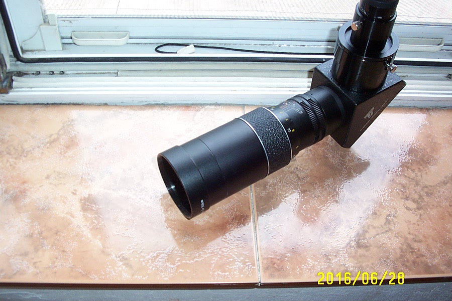 Cum ai lungit drumul optic ca să cuprindă și diagonala? Obiectivele uzuale au vreo 40-50mm distanța până la planul focal iar o diagonală are mai mult de atât. La MTO11-CA din dotare am eliminat opritorul focuserului să pot muta planul focal mai în spate dar la sistemul maksutov-cassegrain o mică deplasare a corectorului+secundara înseamnă o distanță mare a planului focal. Am folosit o prismă pe filet pentru SC-uri, deci mai scurtă.