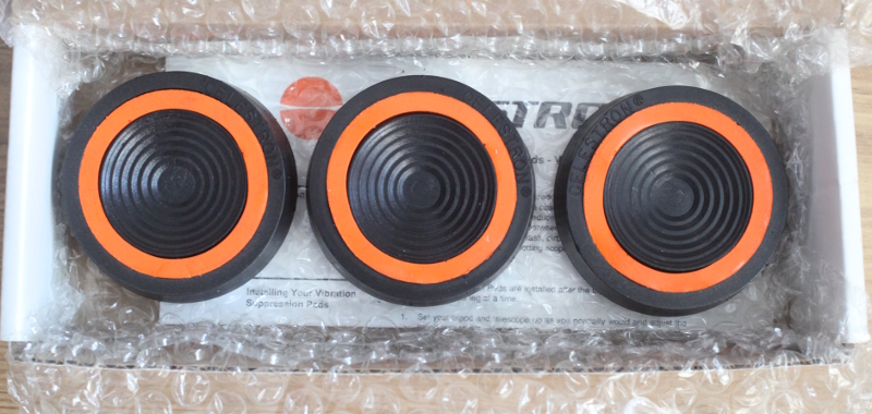 Vand un set (3 bucati) de pastile antivibratii Celestron. Sunt virtual noi, folosite putin, in cutie originala si cu instructiuni. Au urme minime de utilizare dar le-am folosit mai mult in casa la observatii terestre si uneori ca sa nu zgarii podeaua cu trepiedele mai grele. Acum folosesc in principal un trepied Manfrotto cu spreader la nivelul solului si nu le mai pot monta. Pret 180RON cu transport inclus. Veti gasi alternative mai ieftine dar nu Celestron, calitatea amortizarii fiind data de acel cauciuc portocaliu special.