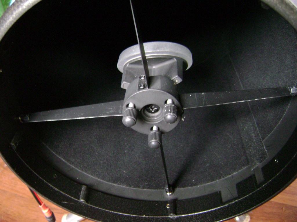 Suportul secundarei are niste gaurele (cam 1 mm adancime) in care intra suruburile de colimare. Posibilitatea de a roti secundara este foarte redusa (poate nu-i un lucru rau, cu exceptia posibilitatii ca focuserul sa nu fie bine pozitionat).