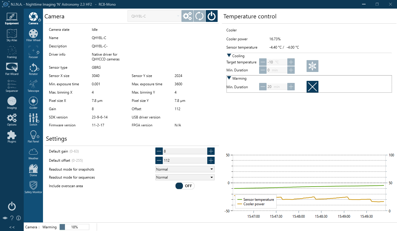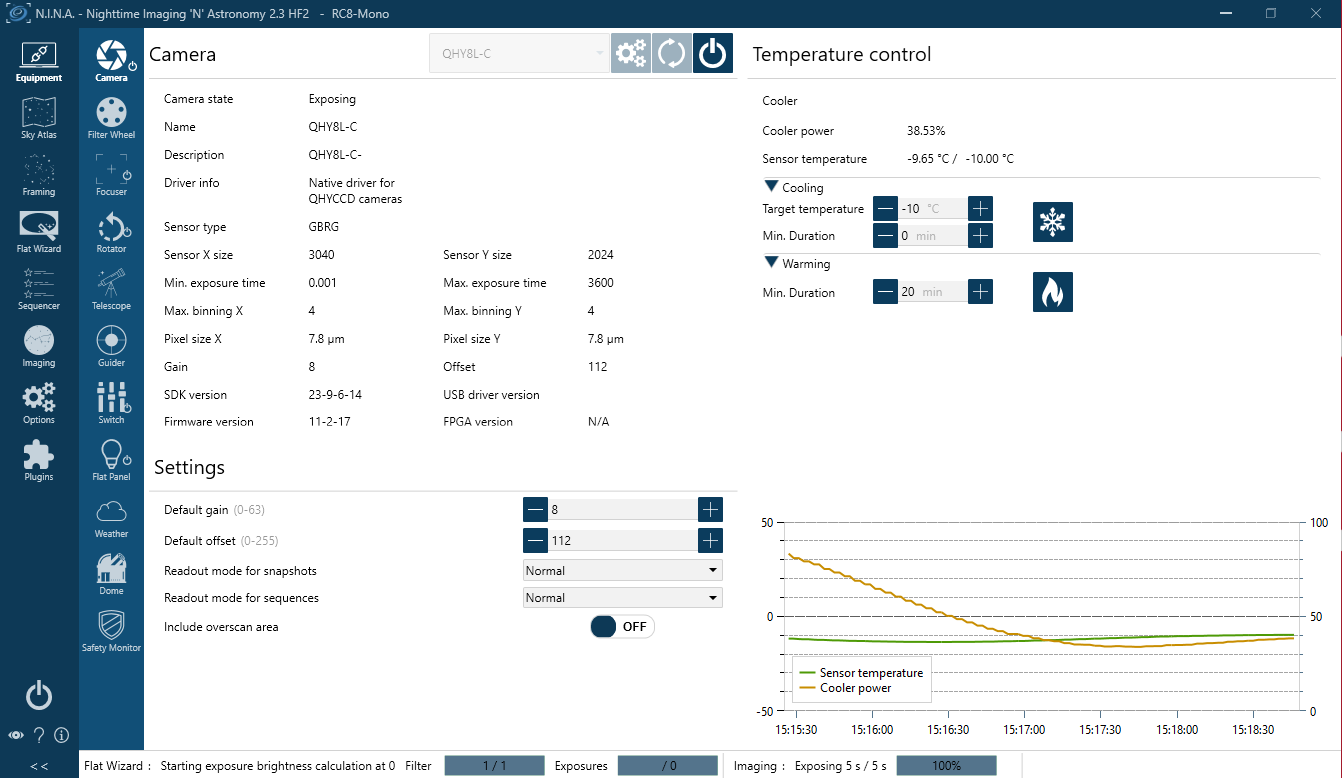 | cu NINA se intelege bine si cu driver nativ si cu ascom, aici e nativ. am pornit racirea spre -10 |