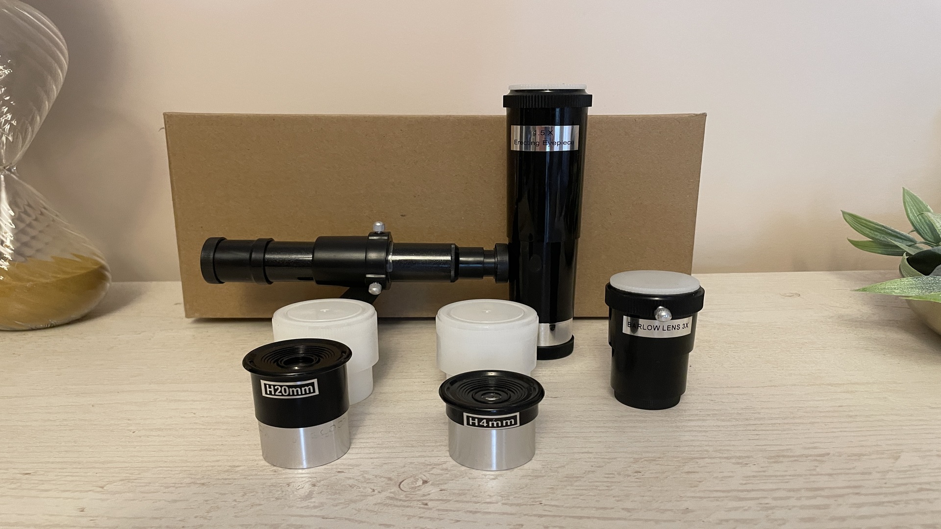 1. Set accesorii noi nefolosite, de la un telescop Opticon Taurus 70/700 mm