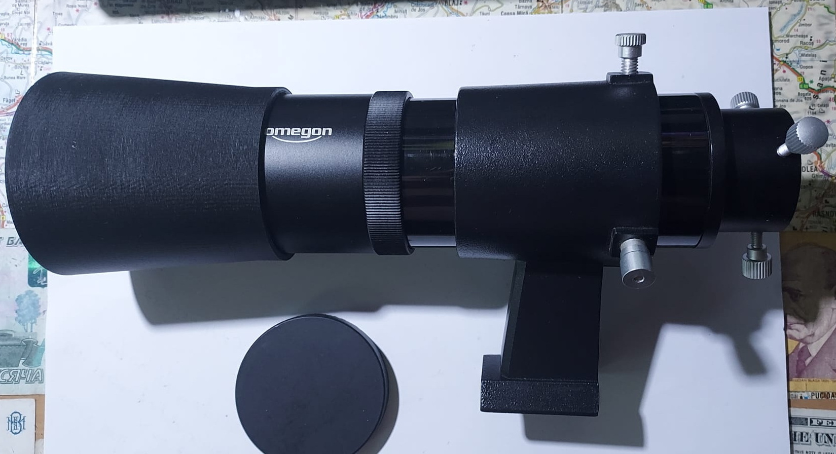 Este modelul de 50 mm Omegon, in spate se poate atasa ocular, s-au camera de ghidaj pe 1,25.