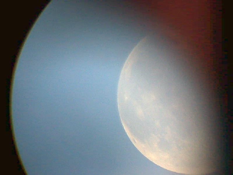 Tocmai ce am facut acum mai multe poze la luna prin webcam. Prima e cu ocularul de 10mm, a doua cu cel de 25mm. În realitate, privit direct prin telescop se vede mult mai clar.